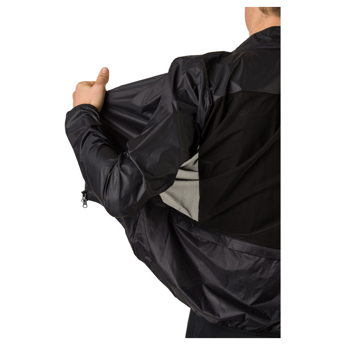 Cuando no necesites llevarla puesta, la chaqueta se guarda fácilmente dentro de su propio bolsillo. Esta característica la hace conveniente para llevar contigo en todo momento, ya sea que estés pedaleando en un día soleado o enfrentando condiciones climáticas más adversas.