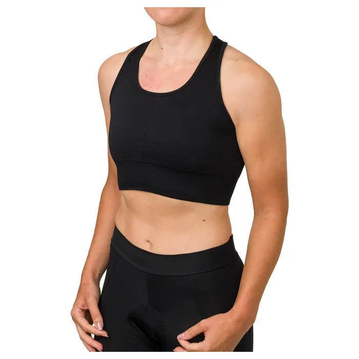 El AGU Seamless Sportsbra Women está diseñado para ciclistas que buscan comodidad, soporte y ventilación durante entrenamientos o rutas en clima cálido.